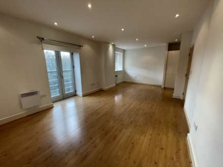 Wood effect floor. Double doors opening to juliet balcony. Two Dimplex electric heaters. Sealed unit double glazed window. Inset ceiling lights.